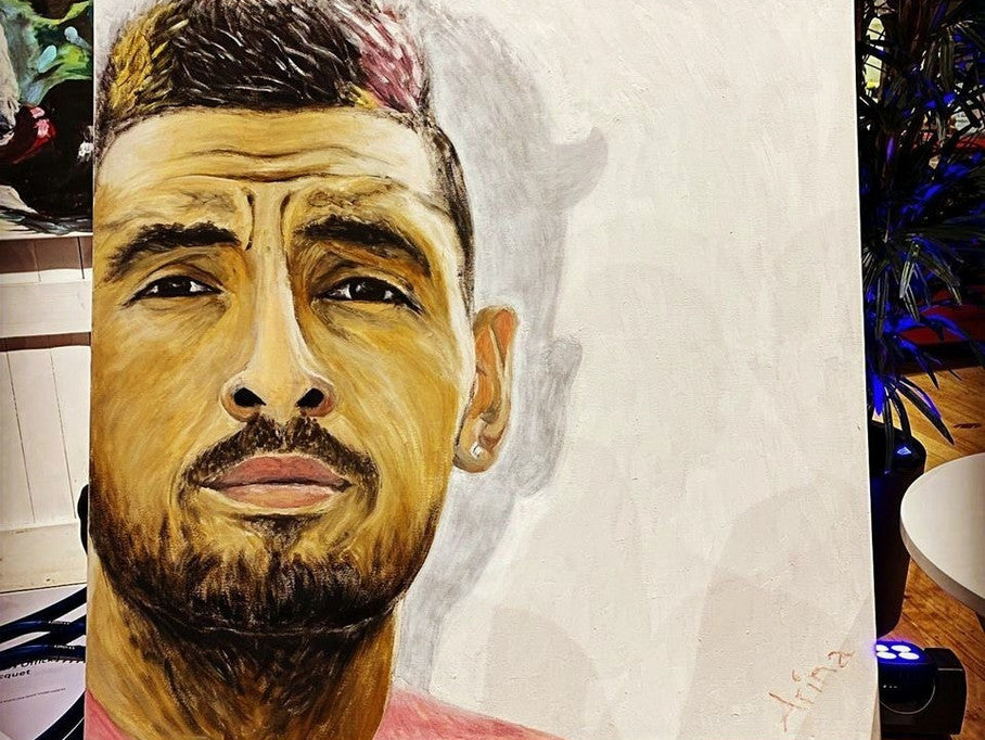 KK recently purchased a signed portrait of Nick Kyrgios to support the NK Foundation. One dilemma that’s been facing him ever since is whether to give the portrait pride of place in the shop.